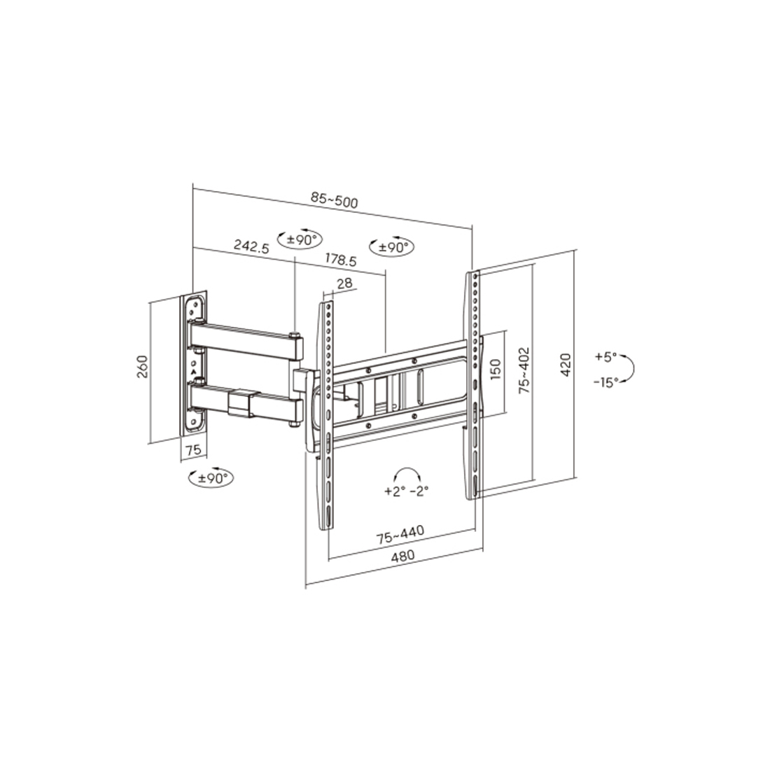 Кронштейн Brateck LPA80-443 для ТВ и мониторов, 32"-75"