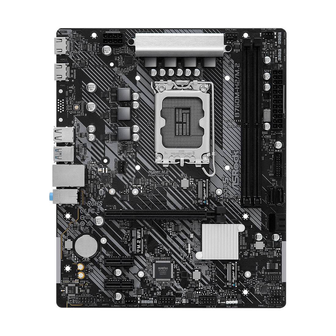 Материнская плата ASRock B760M-H2/M.2 Поддержка 14th, 13th & 12th-е поколение Intel® Core™ Поддержка DDR5 7200+ (OC) 1 PCIe 4.0 x16, 2 PCIe 3.0 x1, 1 M.2 Key E для поддержки WiFi Устройство графического вывода данных: 2 HDMI Realtek ALC897 7.1-канальный HD-кодек Codec 4 SATA3, 2 Hyper M.2 (PCIe Gen4 x4) 6 USB 3.2 Gen1 Type-A (4 Rear, 2 передних), 6 USB 2.0 (2 Rear, 4 Front) Dragon 2.5G LAN Поддержка Автоустановщик драйверов ASRock